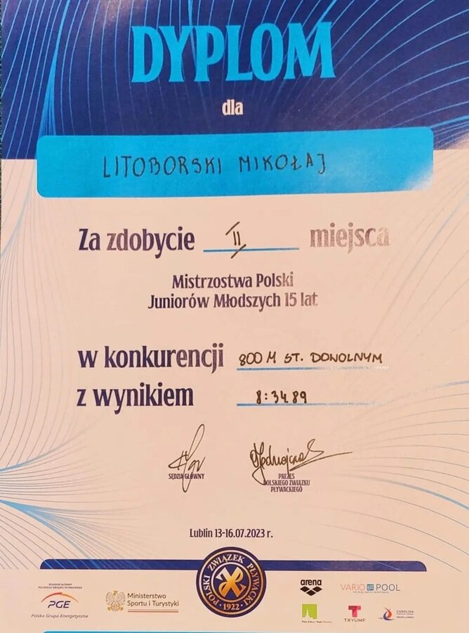 Wszyscy którzy startowali w Mistrzostwach Polski zasługują na wyróżnienie, nie tylko te osoby które zajęły czołowe lokaty ale każdy z was ponieważ idąc za maksymą barona Pierra de Coubertina ,, nie jest najważniejszy triumf, ale walka".
